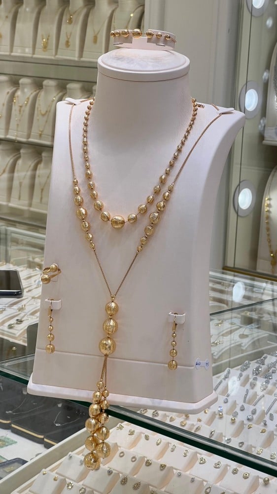 طقم زفاف ذهب عيار 21 بتصميم ايطالي حصري لافت و مميز بوزن 60.6 جرام .. طقم ذهب صُمم لأجلك ، مما يجعلك أمرأة عصرية كاملة البهاء، لتتزيّن ملامح جسدك بطابع الجمال الأنثوي الساحر، اجعلي من هذه القطع لغة لجمالك.